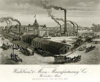 Eleven years after Ichabod Washburn came to Worcester in 1820, he started drawing wire. Three years later, he established a wire factory on Grove Street across from Salisbury Pond. One of the largest of its kind in the country, the Washburn & Moen Company made wire for barbed wire, piano wire and even corset wire. (The Royal Worcester Corset Co. was started by David Fanning in 1864 as the Worcester Skirt Co.) Eventually, Washburn & Moen became part of American Steel & Wire Company.