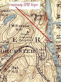 The causeway bridge is at the location of Rt-9 bridge. Devides the like into north and south lake quinsigamond.