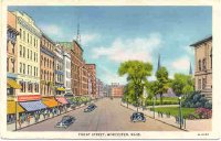 I do remember a few different things about Front ST. years ago, 60s or so. Liggetts was on Front and Main St across from City Hall, Next door was Kennedys butter and eggs., I recall JJ Newburys being next door and then FW Woolworth .. both had back doors to Mechanic St. through a alley way. I have a blank between Woolworth and CT Sherer on the corner where the Galleria buildings were built. a little further up was Shacks Mens Store. and a Theater.. think it was Warner. I have kind of a blank spot lots of stores etc that we probably never went into.I think Strawberries came in after I moved to Millbury and no one went downtown to Worcester very often. So Sad..I miss the the wonderful Main ST shopping. all the way down to Barnards and Ullian ladies shop.