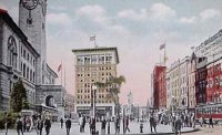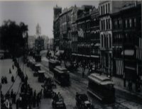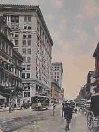 Notice the post office which is now Donohue Federal Building behind the Brown Building which is left of the trolly. There is a fountain in place of that building now.